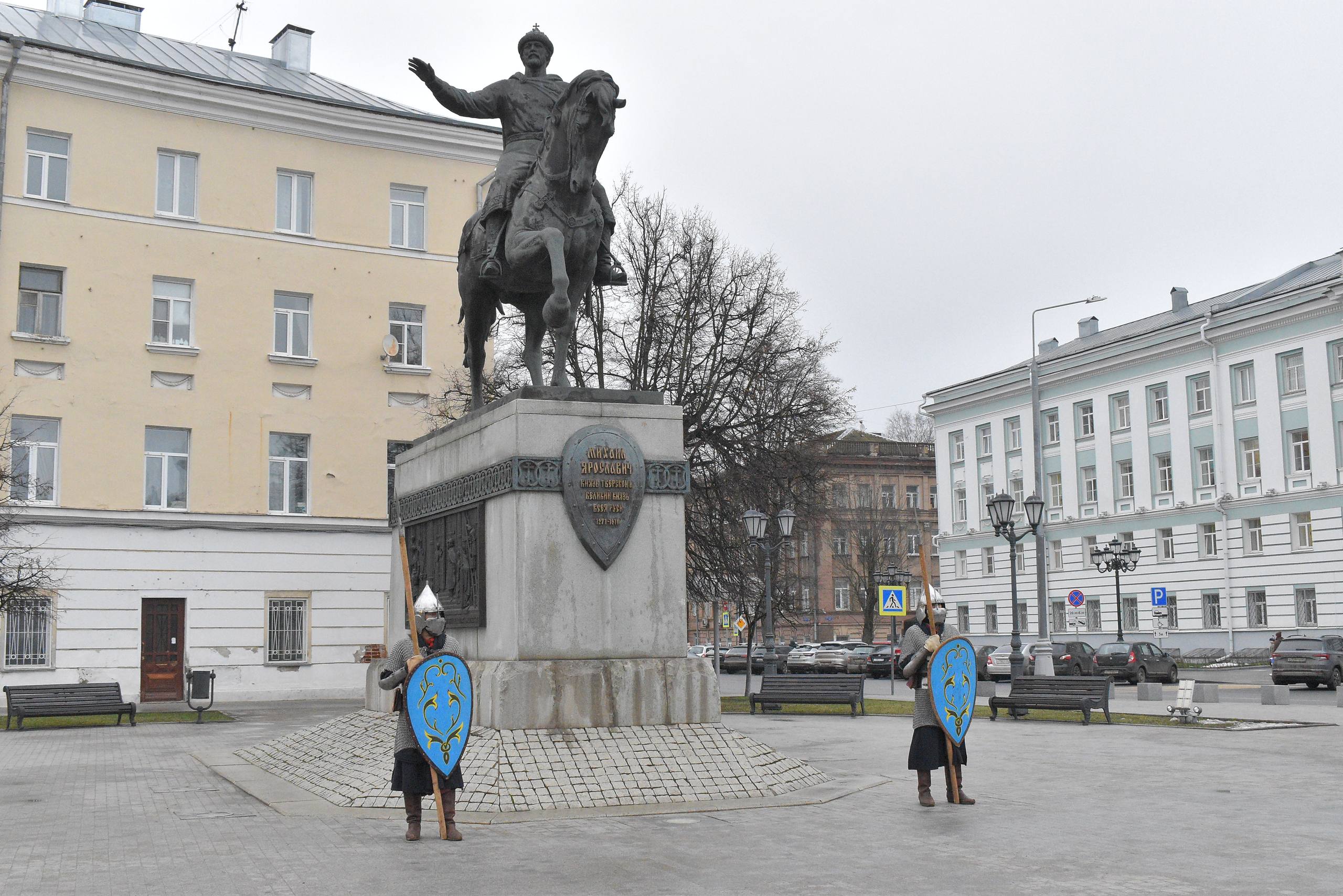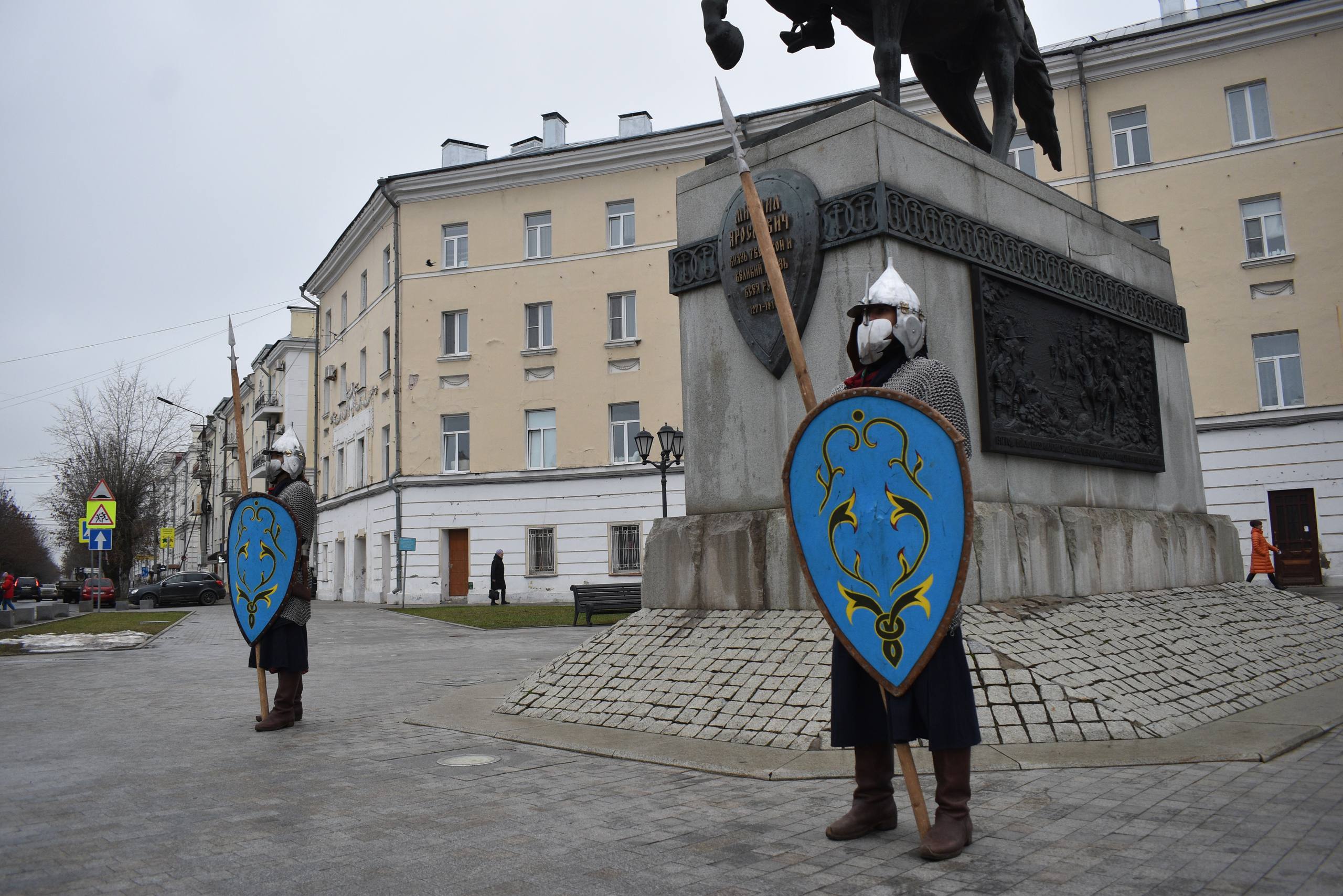 По традиции, на площади святого благоверного князя у памятника Михаилу Тверскому на пост исторической памяти заступили участники историко-реконструкторского клуба «Дружина».