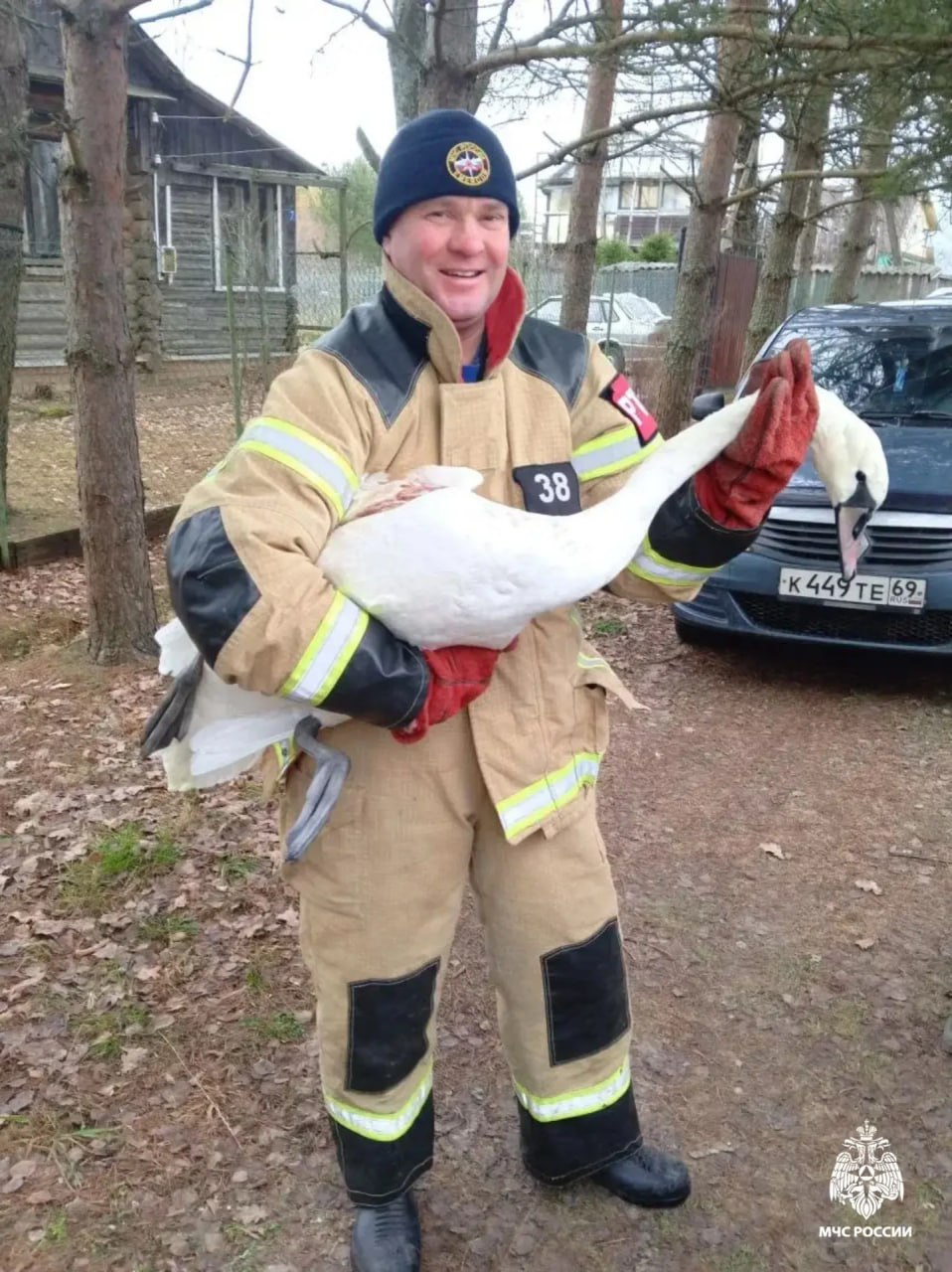 Сотрудники 38-й пожарно-спасательной части совместно с представителями Министерства природных ресурсов региона и членами общества охотников и рыболовов Лихославльского района приняли участие в спасении лебедя с травмой крыла.