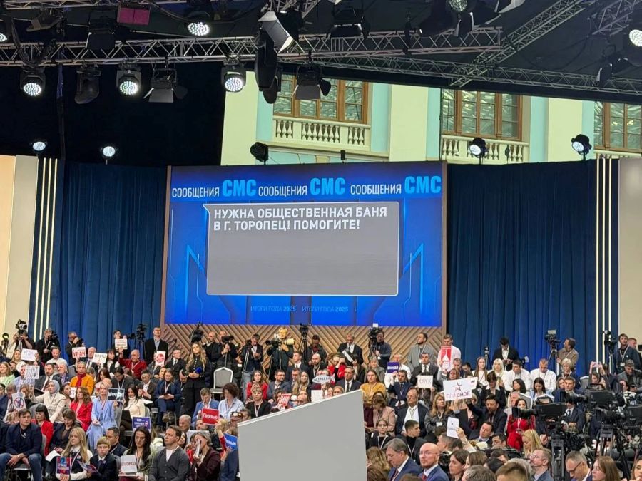 Во время ежегодной программы "Итоги года с Владимиром Путиным", где глава государства отвечал на вопросы россиян в формате прямой линии, на экране появилась просьба от жителей Торопца. В сообщении говорилось, что в городе "нужна общественная баня. Помогите!".