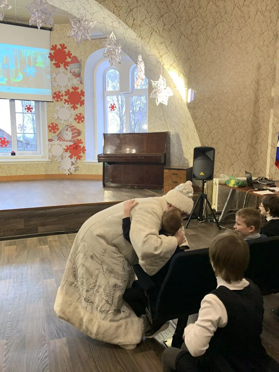 Каждому из наших маленьких друзей персональные сладкие подарки вручили самые настоящие Дед Мороз и Снегурочка.