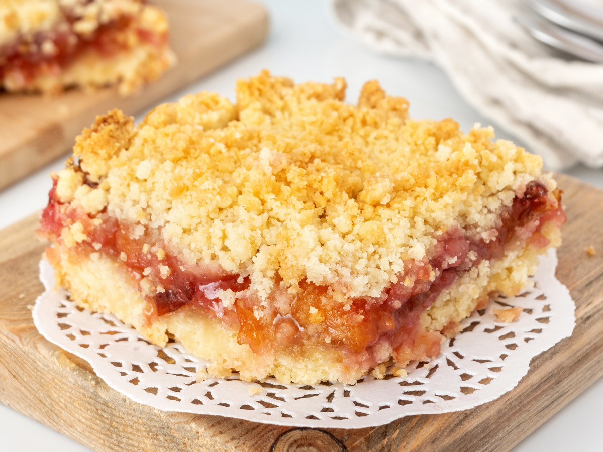 Результатом станет рассыпчатый и сладкий пирог с ярким ягодным вкусом варенья. Поскольку тесто не требует замеса, оно приобретается рыхлая структура, которая прекрасно держит форму. Особенно удачным вариантом для начинки будет густое повидло.