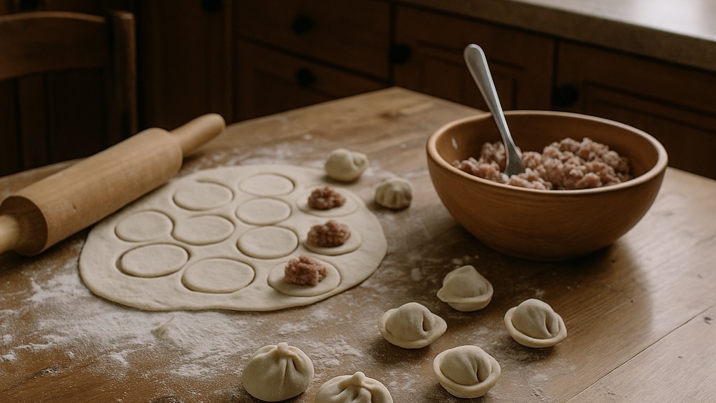 Добавление яйца и масла делает тесто более нежным и легко поддающимся раскатке. А для начинки лучше всего выбрать свежий свино-говяжий фарш, который стоит смешать с мелко нарезанным луком и немного увлажнить бульоном или водой. Это позволит пельменям оставаться сочными и насыщенными.