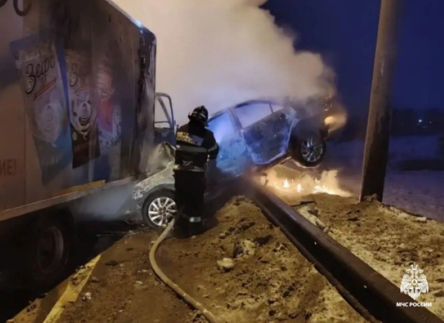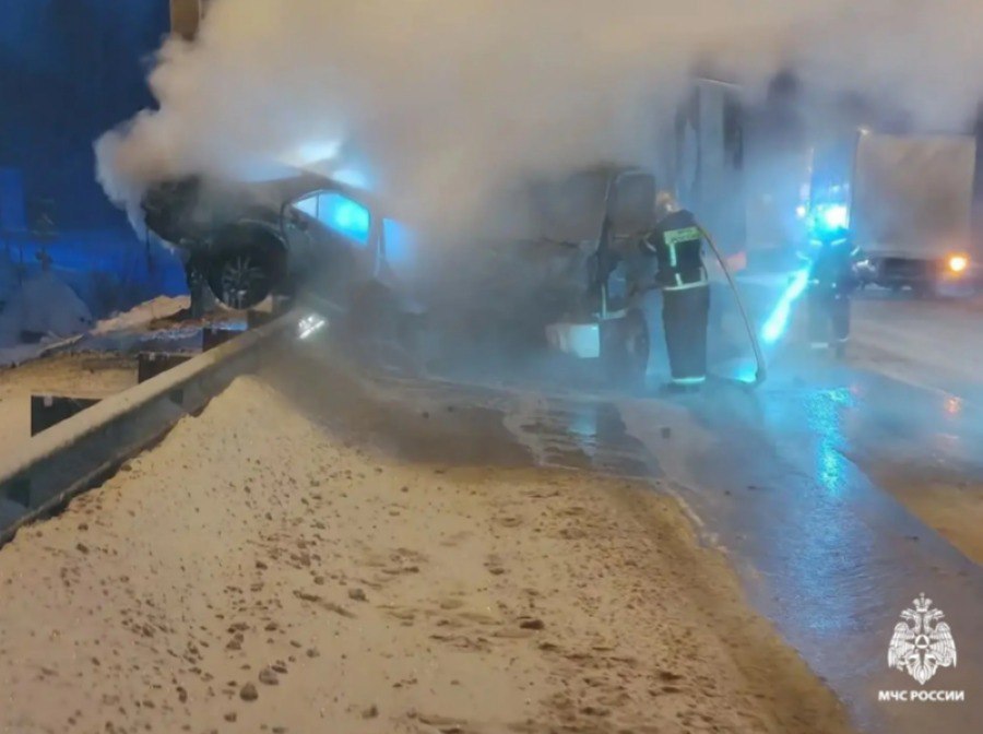 Утром 30 декабря на трассе М-10 «Россия» в Спировском округе произошло ДТП: легковушка столкнулась с грузовым автомобилем, что привело к возгоранию.