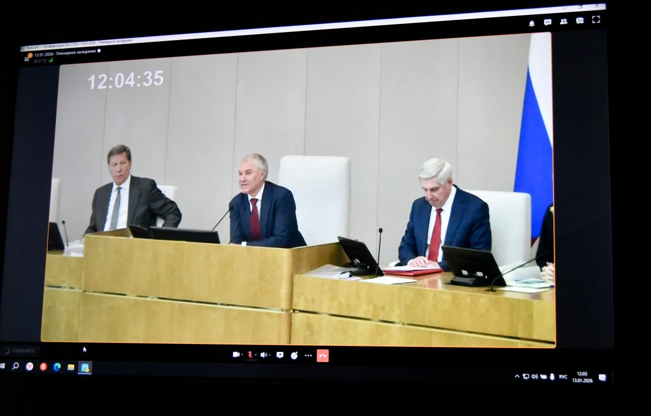 13 января в ГосДуме состоялось первое пленарное заседание десятой сессии VIII созыва. В режиме ВКС участие в нем приняли региональные парламенты. ЗСТО представляли председатель Сергей Голубев, его заместители Юрий Цеберганов и Александр Клиновский.