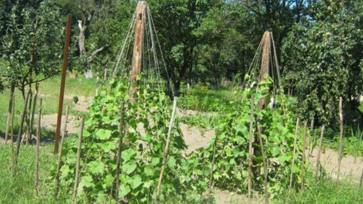 - Экономия пространства. Плети огурцов направлены вверх, что освобождает место на земле.