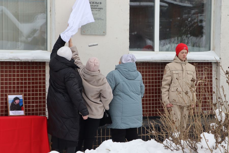 Почетное право открыть памятные мемориальные доски доверили родным Андрея Владимировича Васильева и Алексея Викторовича Соруженкова.