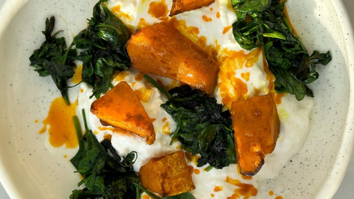 В этом выпуске «Готовим с шефом» шеф-повар Влад Корпусов делится уникальным рецептом, который поможет ощутить истинный вкус осени. Запеченная тыква, дополненная кремовой страчателлой и умиротворяющим облепиховым соусом, станет настоящей находкой для домашнего ужина. Особый акцент в блюде делает поджаренная зелень, придающая хрустящий и ароматный штрих.