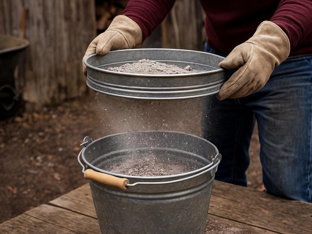 После сжигания золу нужно оставить в металлической ёмкости для полного остывания. Пластиковые контейнеры в этом случае не подходят — из-за остаточного тепла они могут повредиться. Наилучший вариант — просеять золу через металлическое сито, отделяя мелкие фракции, которые содержат минимальное количество питательных веществ. Эти фракции легко распределяются по почве, тогда как крупные угольки лучше использовать для улучшения структуры почвы.