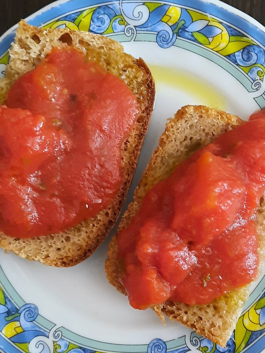 - Испанские тапас с помидорами: Просто нарезанные свежие помидоры, немного оливкового масла, посолить и добавить чеснок по вкусу. Эти бутерброды — настоящая находка!