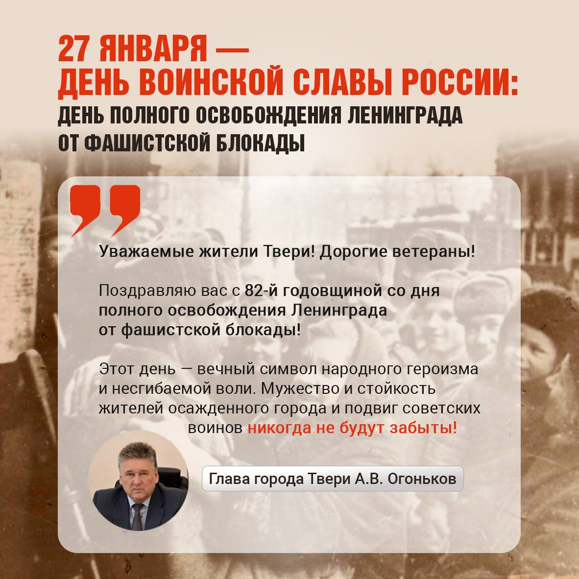 С Днем воинской славы России — 82-й годовщиной со дня полного освобождения Ленинграда от фашистской блокады!