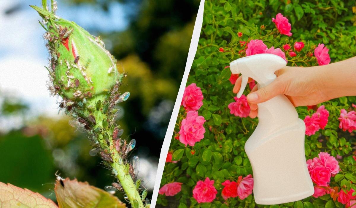 Для более устойчивого эффекта можно использовать народное средство — мыльный раствор: 1 столовая ложка жидкого мыла на 1 литр воды. Смесь помещают в распылитель и опрыскивают розы аккуратно по листьям и стеблям.