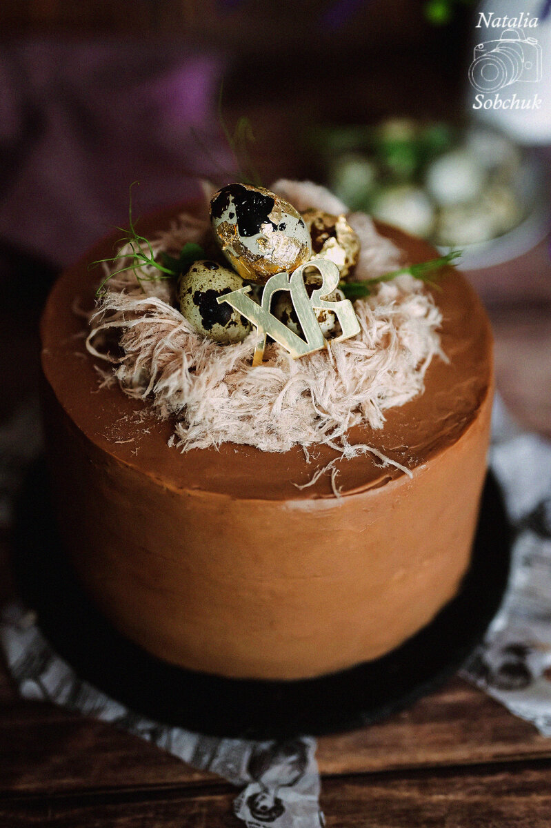 Внутри торт скрывает пористые шоколадные бисквиты, пропитанные ликером с шоколадом и сливками, а также нежный крем чиз и песочные коржи с ореховой меренгой. Масляный крем со сгущёнкой тает во рту, создавая гармонию вкусов. Верхушка торта покрыта насыщенным шоколадным ганашем, который не только прекрасно держит форму, но и изумительно вкусен!