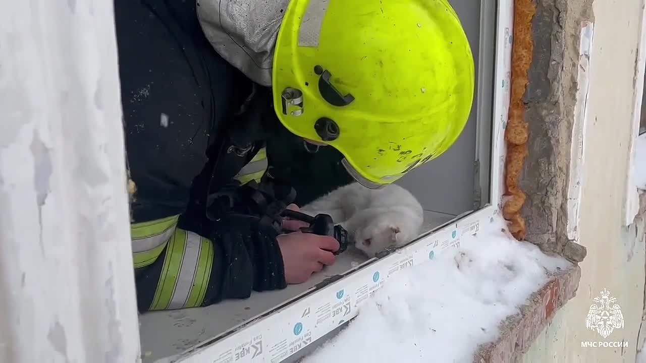 Трогательнее кадров сегодня точно уже не будет. Пожарный спасает белого кота, который отравился угарным газом: дает ему подышать кислородом, гладит бедолагу. Другой спасатель, желая помочь усатому пострадавшему говорит: «Помассажируй грудинку, Сереж».