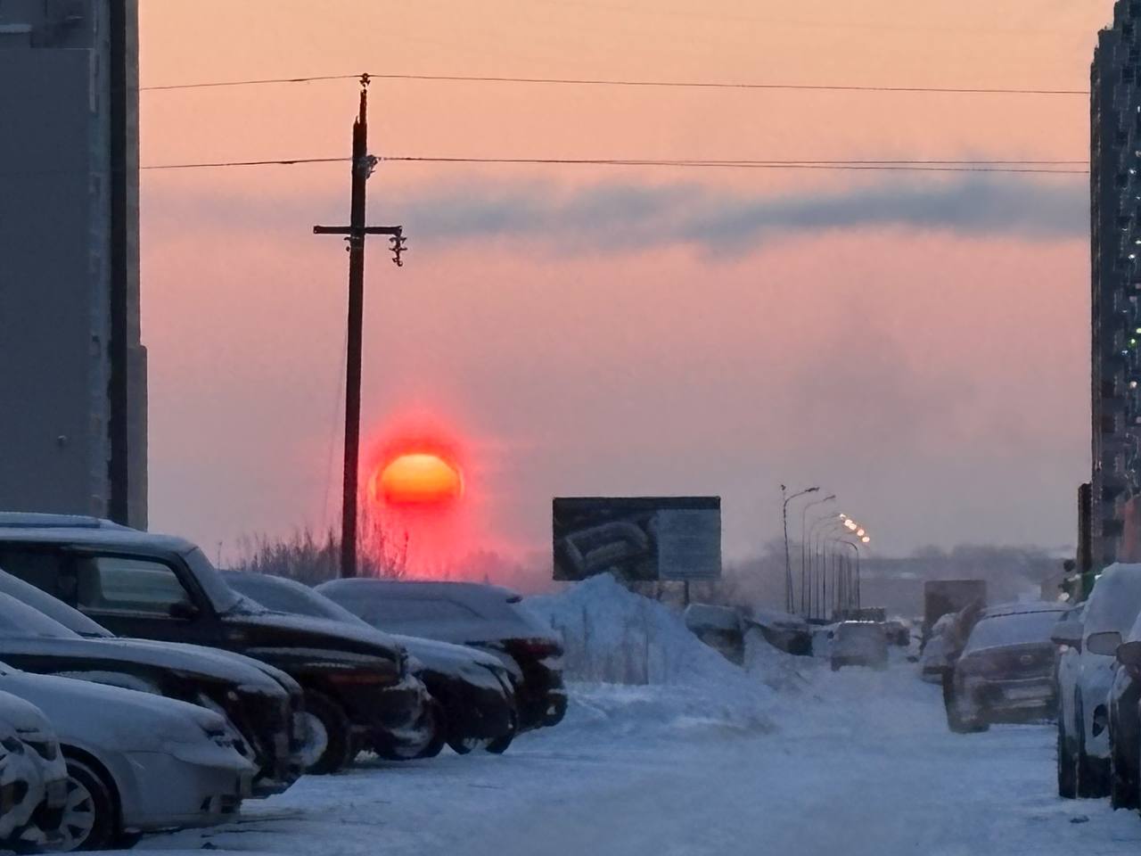 Вот такой ярко-алый рассвет был сегодня в Твери