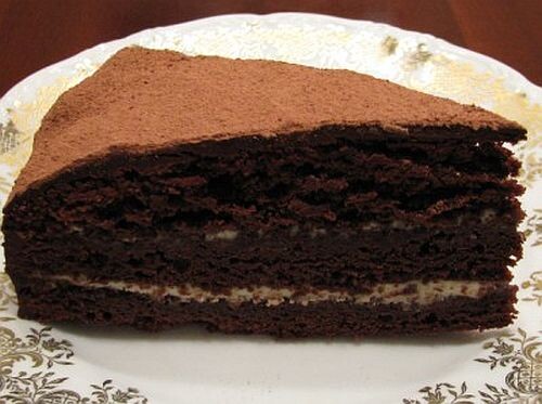 Глазурь готовится аналогично: шоколад растапливается со сливками и сахаром, после чего покрывает верх и боковины торта. После застывания глазури торт можно украсить какао-порошком. В итоге получится великолепное лакомство, которое обязательно порадует всех любителей сладкого.