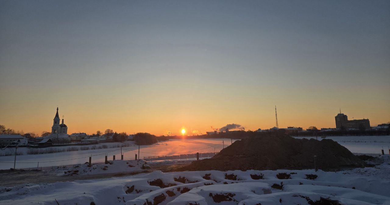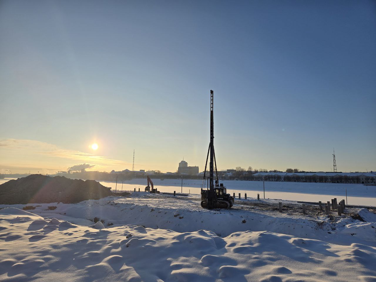 Несмотря на ядреные морозы, в январе и феврале на строительной площадке нового Речного вокзала в Твери продолжает работать строительная техника.