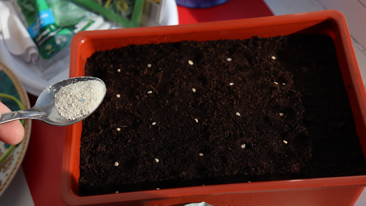 - Семена присыпаются увлажнённым грунтом и опрыскиваются из пульверизатора;