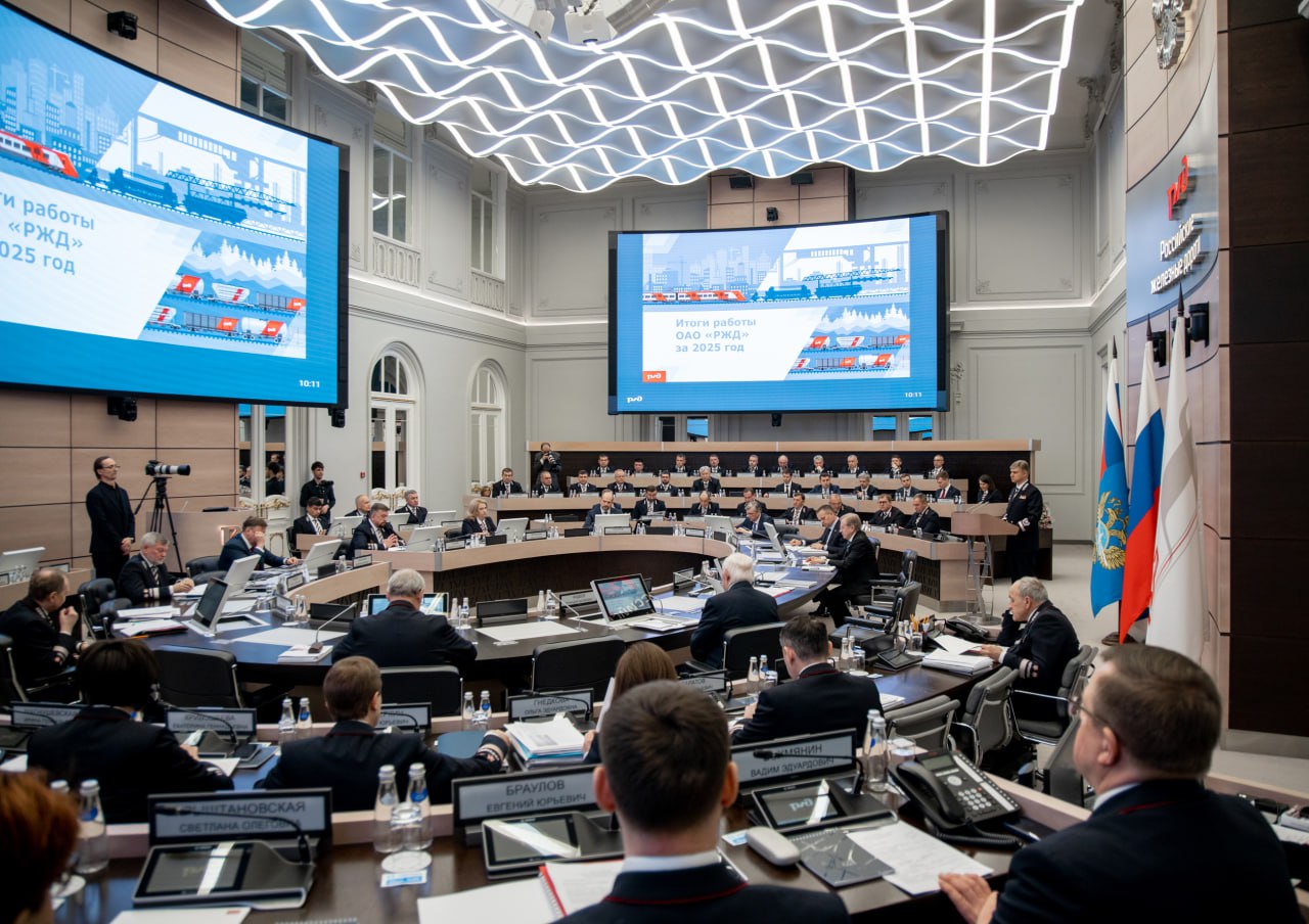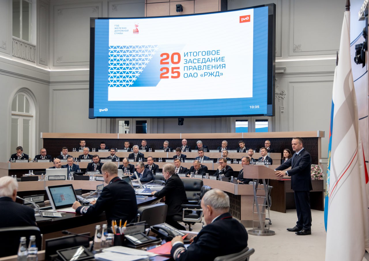 В Москве состоялось итоговое заседание правления ОАО «РЖД» за 2025 год. В нем приняли участие заместитель Председателя Правительства Виталий Савельев, Министр транспорта Андрей Никитин, генеральный директор – председатель правления ОАО «РЖД» Олег Белозёров и руководитель Росжелдора Александр Сахаров.