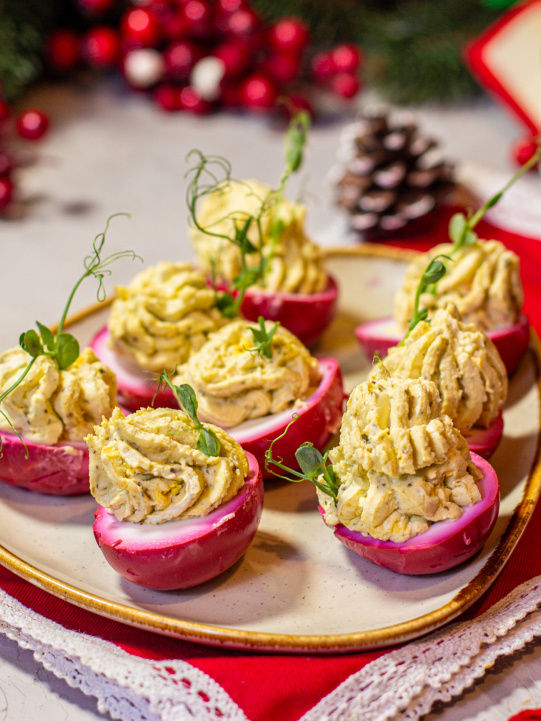 Закуски из простых ингредиентов могут выглядеть поистине эффектно. Яркие и аппетитные фаршированные яйца, удивляющие своим насыщенным цветом и вкусом, обретут популярность на любом застолье. Финальный акцент из свеклы и творожного сыра создаст не только зрелище, но и по-настоящему гастрономическое наслаждение. Каждый гость определенно захочет попробовать это оригинальное угощение.