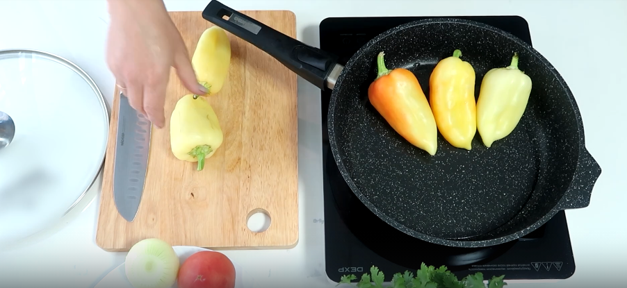 Подготовка перца и начало жарки