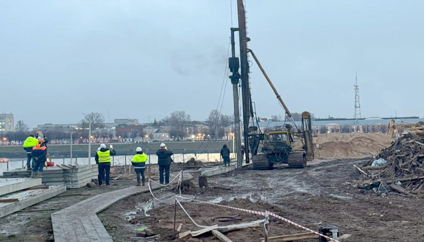 В Твери погрузили 113 свай для основания нового Речного вокзала: фото с объекта.