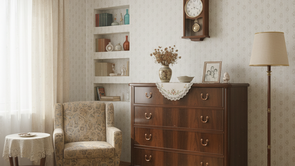 На верхней части комода всегда лежала кружевная салфетка, а рядом — семейные фотографии, часы или любимая статуэтка.
