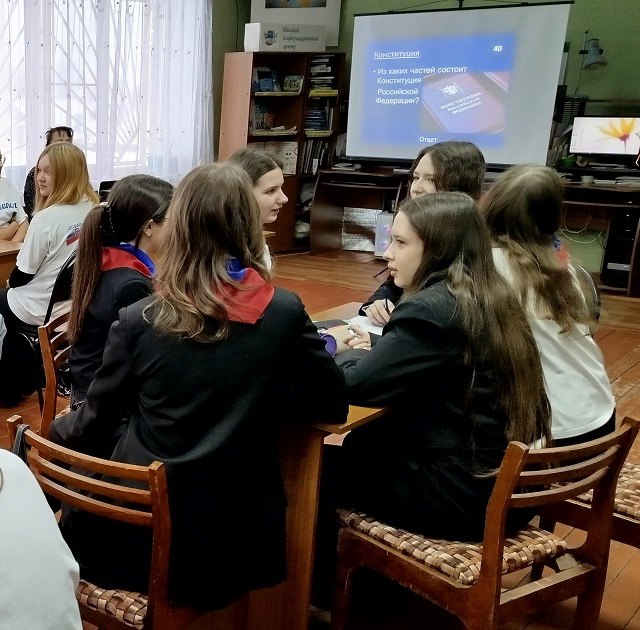 В формате «Своя игра» ребята отвечали на вопросы 5 игровых станций: «Права гражданина», «Конституция», «Ты - избиратель», «Органы власти в РФ», «Тверская область».