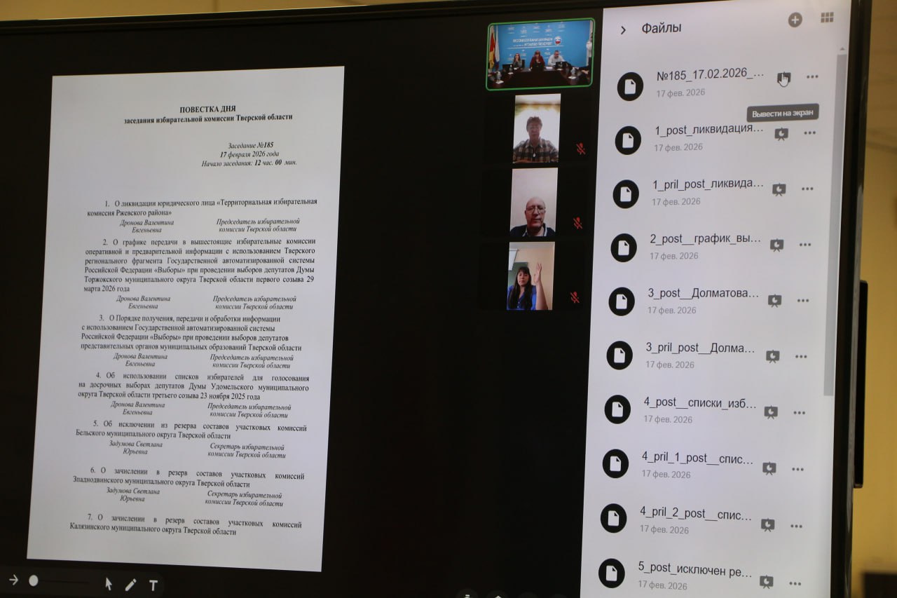 17 февраля 2026 года состоялось 185 заседание избирательной комиссии Тверской области