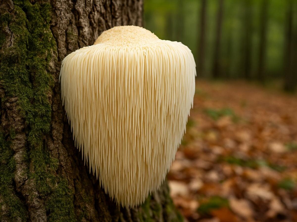 Ежовик гребенчатый (Hericium erinaceus) легко узнать благодаря белым шипам, свисающим как волосы. Это гриб, известный под многими именами — "гриб-лапша", "борода старца" и "сатир". Его плодовое тело может достигать 30 см в диаметре и вырастает на мёртвой древесине дуба, бука и берёзы, способствуя разложению и обогащению почвы.