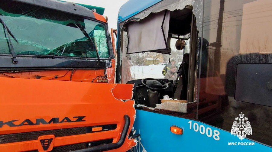 В Твери затруднено движение из-за ДТП с автобусом и самосвалом