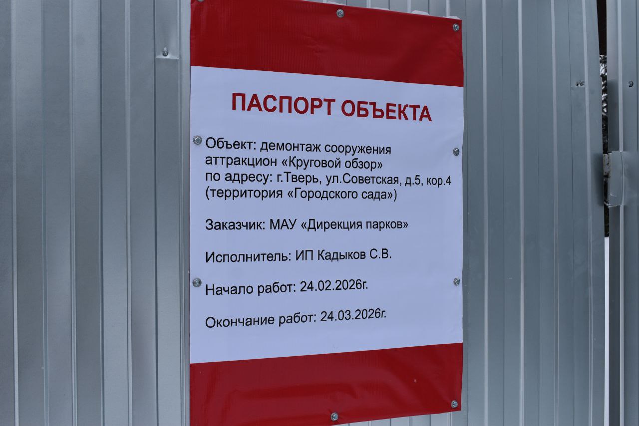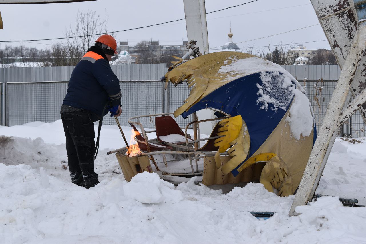В Городском саду Твери начинаются работы по демонтажу колеса обозрения, которое не эксплуатировалось на основании заключения экспертов о его неисправности.