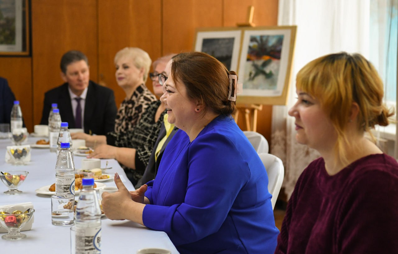 Перед встречей с педагогами Виталий Королев посетил актовый зал школы, кабинет декоративно-прикладного искусства теоретический и художественный классы. Глава региона пообщался с ребятами, поинтересовался их оценками в журнале успеваемости, отметив отличный уровень учебы многих воспитанников.