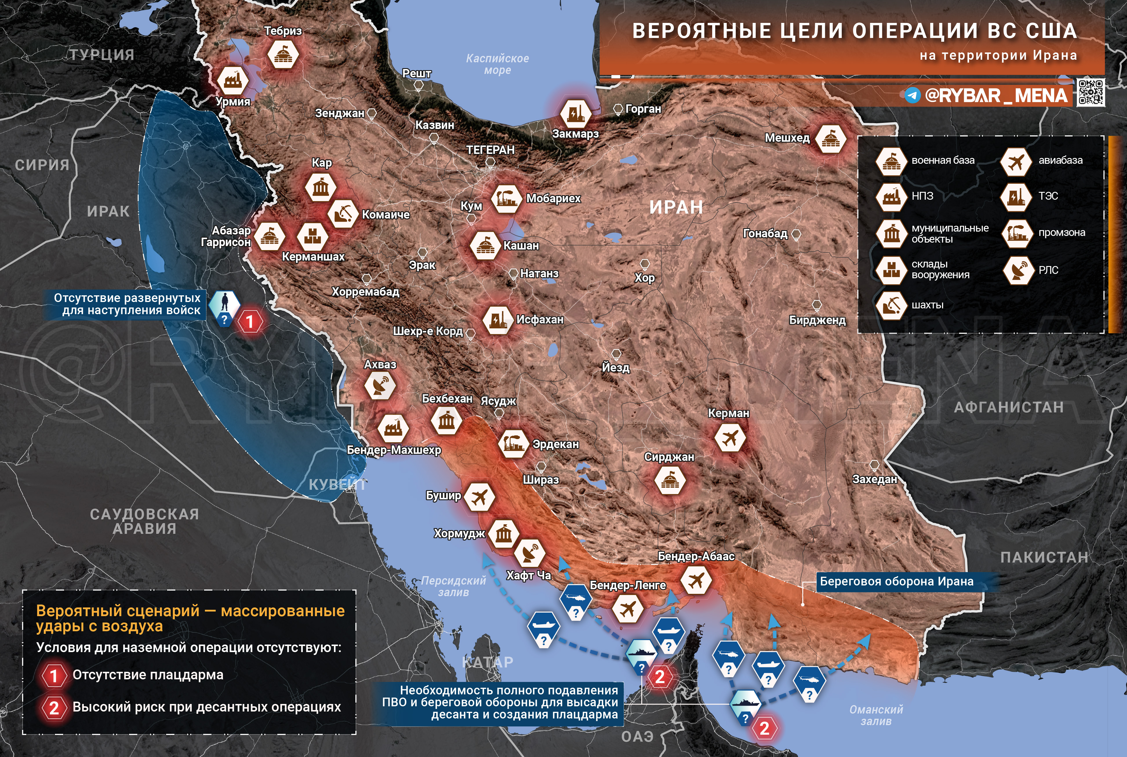 Критическая инфраструктура. Неоднократно американцы снимали такие объекты, как НПЗ в Урмии и Бендер-Махшехре, ТЭС в Закмарзе и другие. Удары по ним могут обрушить экономику.