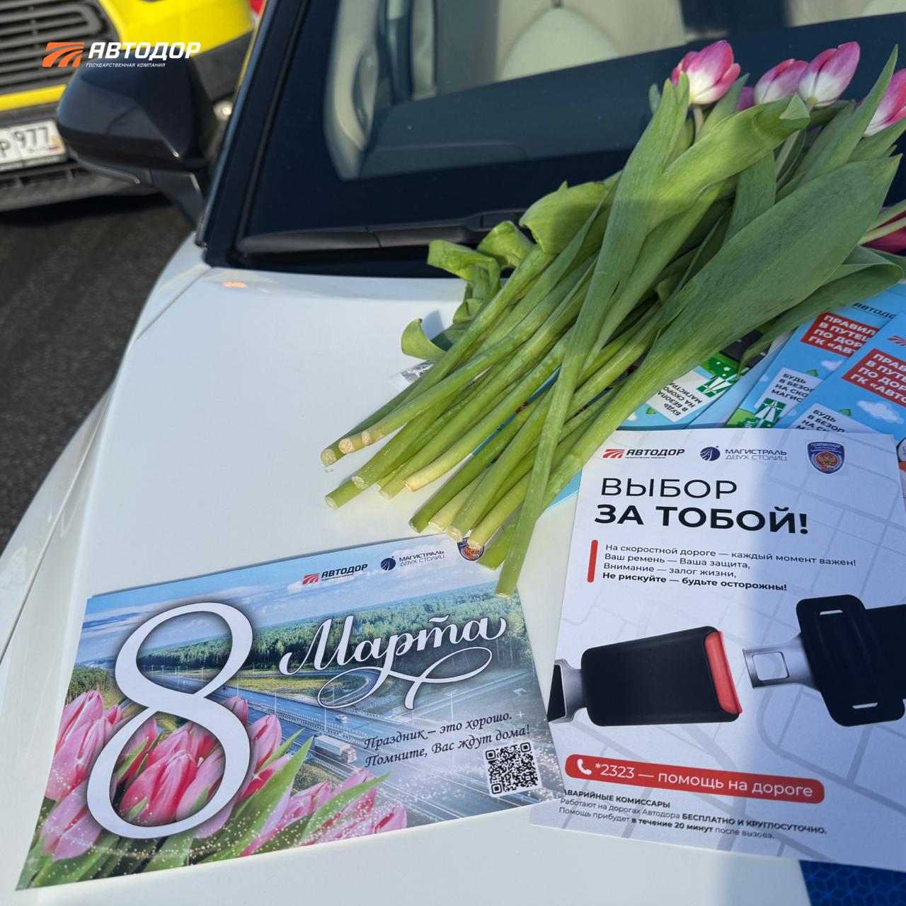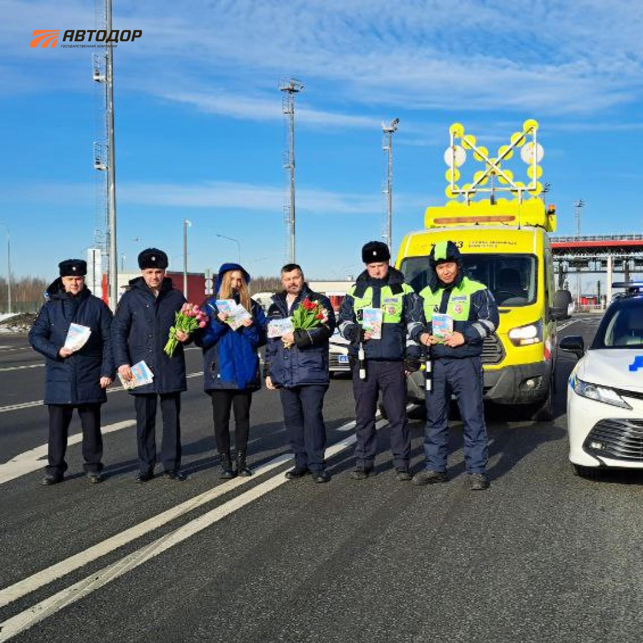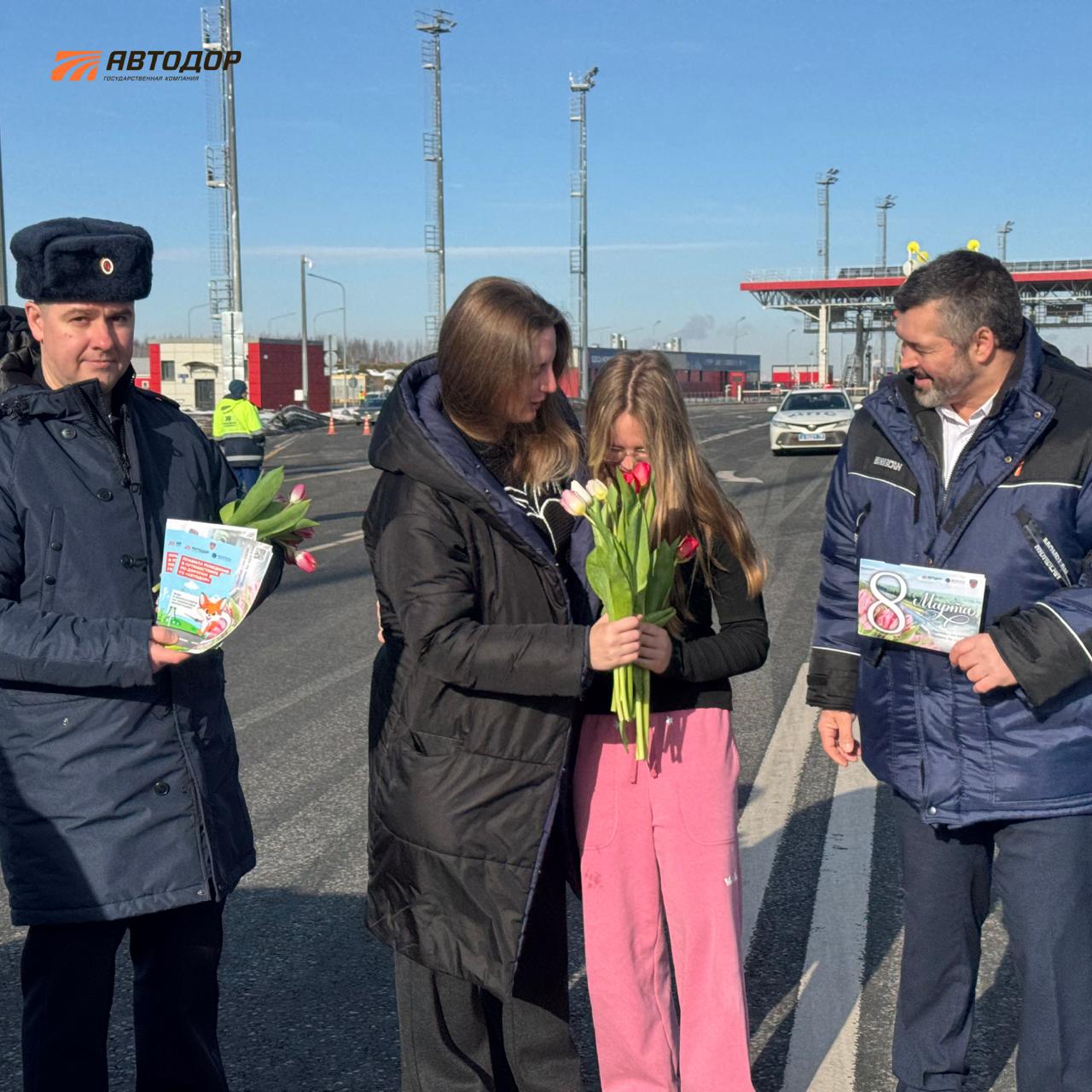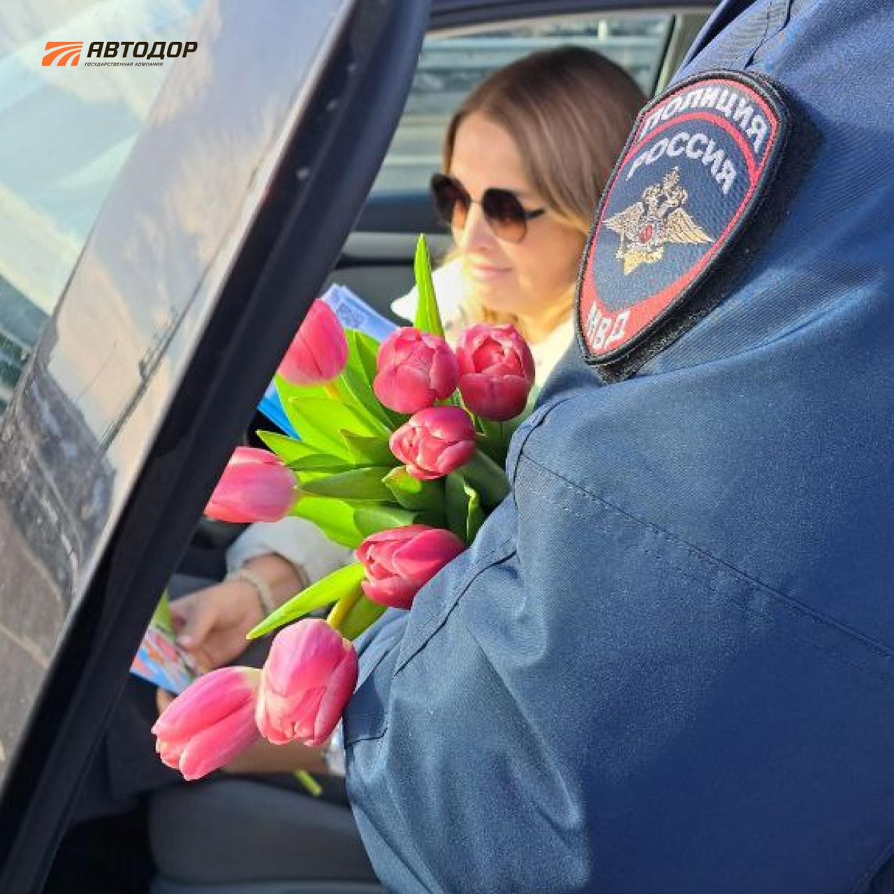 На трассах Автодора женщинам дарили цветы к 8 марта