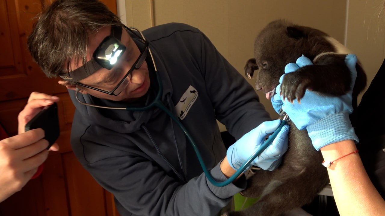Первенцы этого года прошли ветеринарный осмотр. Мишек осматривал врач Госпиталя дикой природы. Видео на ТИА
