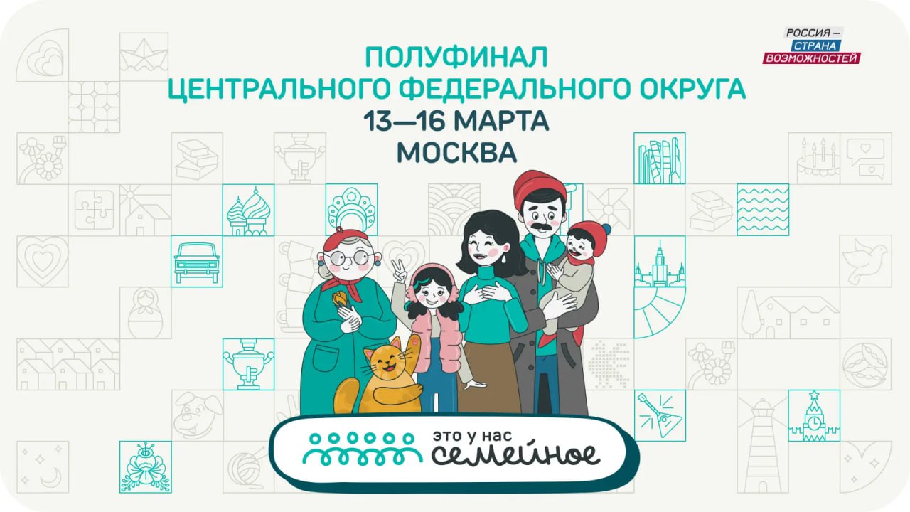 С 13 по 16 марта в Москве свыше 1800 человек из более 340 семейных команд ЦФО примут участие в самом массовом полуфинале второго сезона конкурса «Это у нас семейное», который является частью президентского нацпроекта «Семья»