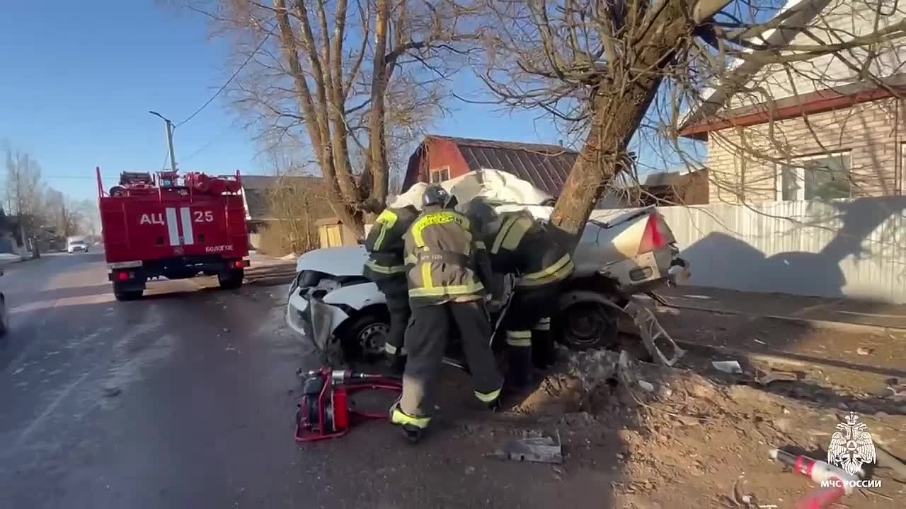 ДТП произошло на улице Кирова в Бологое, где водитель автомобиля "Форд Фокус" превысил скорость, не справился с управлением и врезался в дерево.