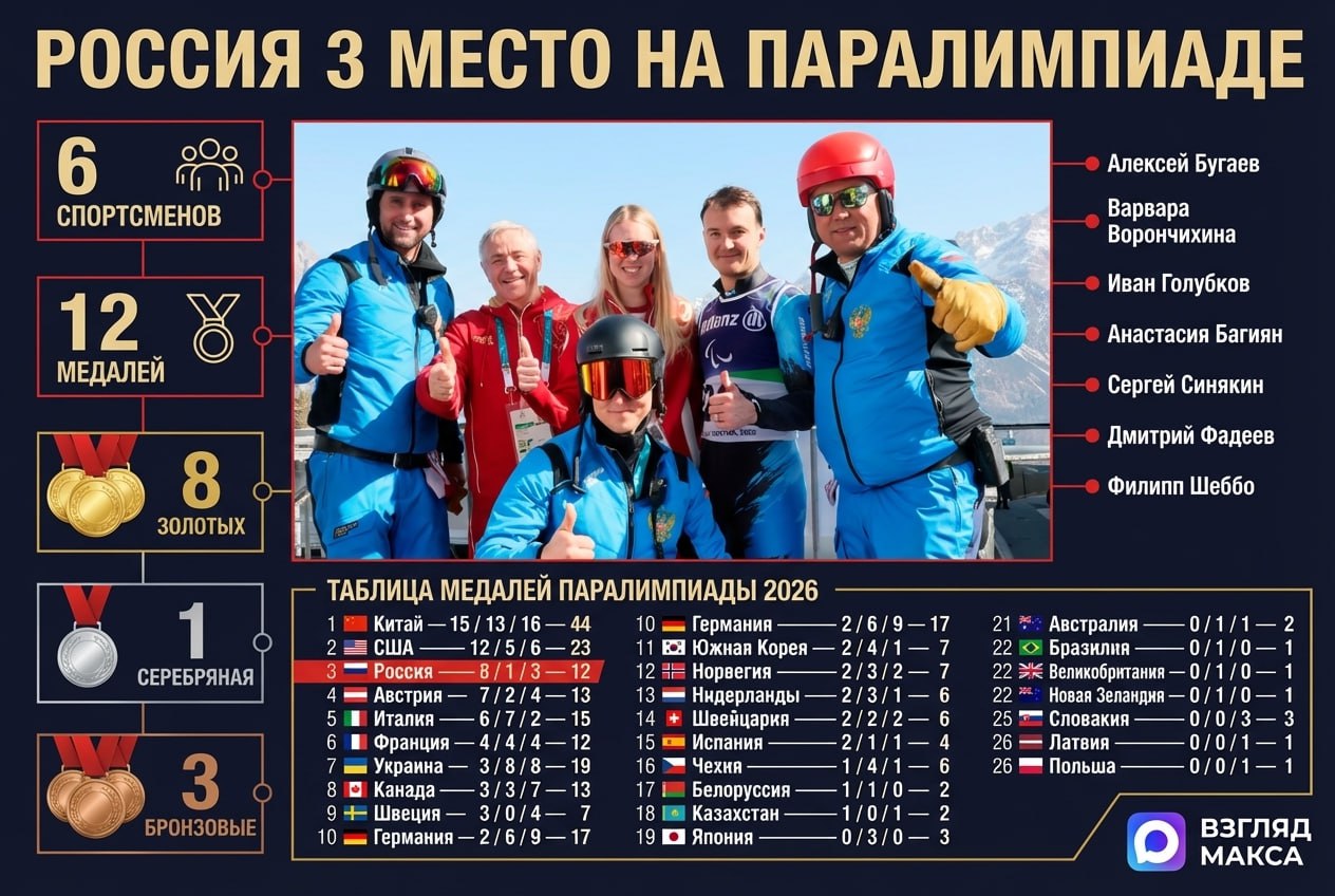 За тех, кто не прогнулся. За тех, кто не спрятался за удобной обезличенностью. За тех, кто вышел под российским флагом, под своим гимном и не просто вернулся, а заставил говорить о себе результатом. Шесть спортсменов. Всего шесть. И третье место в медальном зачете. Восемь золотых, одна серебряная, три бронзовые медали. Для сравнения: у Китая — 15 золотых, 13 серебряных и 16 бронзовых наград, у США — 12 золотых, 5 серебряных и 6 бронзовых. И когда впереди такие мощные по численности сборные, а Россия с шестью спортсменами всё равно входит в тройку сильнейших, это уже не просто успешное выступление. Это характер. Это дух. Это Россия.