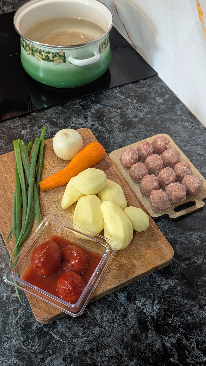 Совет: Чтобы сократить время приготовления, бульон можно сварить заранее. Просто положите мясо с косточкой в холодную воду, доведите до кипения и варите 2-2,5 часа на умеренном огне. Процеженные остатки можно заморозить на следующий раз!