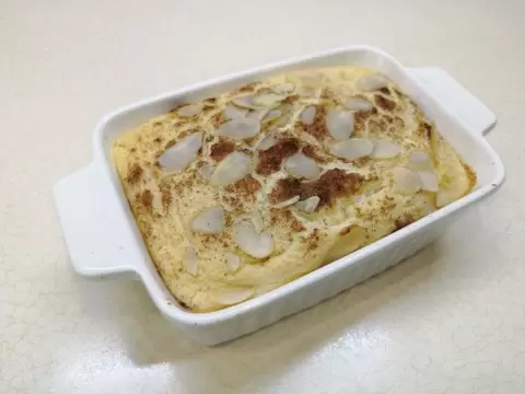 Далее, готовую массу нужно переложить в форму, а оставшиеся остатки — в меньшую для кексов. По желанию, десерт можно украсить корицей и миндальными лепестками, добавляя нежный аромат и текстурные акценты. Выпекать десерт рекомендуется в предварительно разогретой духовке при температуре 180 градусов. Время запекания колеблется от 25 до 40 минут в зависимости от особенностей конкретной модели духовки. Важно следить за тем, чтобы пудинг не подгорел, но и успел хорошо схватиться.