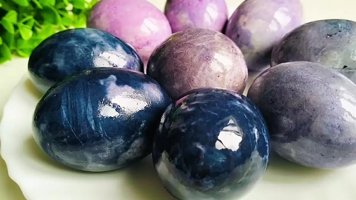 Яйца после окрашивания несколько труднее чистить, но радует тот факт, что их вкус остается неизменным, что является безусловным плюсом. Однако стоит отметить, что треснувшее яйцо выглядит не очень привлекательно: тёмно-синий цвет окрашивает белок, создавая довольно необычное зрелище.