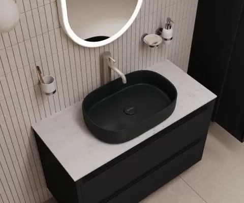 Черный металлик или матовые поверхности создают ощущение минимализма и дорожатежного стиля. Это не только про внешний вид, но и про то, как легко совместить черную сантехнику с камнем или деревом в ванной, чтобы пространство выглядело однородно и премиально.