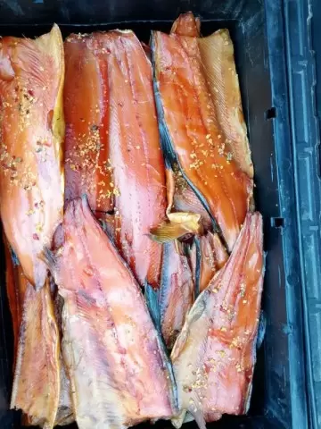 Представляем вашему вниманию уникальное деликатесное изделие — плоды горбуши, приготовленные методом холодного копчения. Это продукт, который не только порадует ваш вкус, но и станет изысканным дополнением к любому столу.
