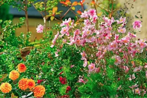 Когда летние цветы покидают сад, на сцену выходят осенние анемоны, радующие глаз до первых заморозков. Эти элегантные растения начинают цвести в августе и продолжают бурно распускаться вплоть до конца октября. Цветки анемон бывают как простыми, так и полумахровыми, при этом их венчает ярко-желтая «корона» тычинок, изобилующая пыльцой, что делает их любимцами пчел, бабочек и шмелей.