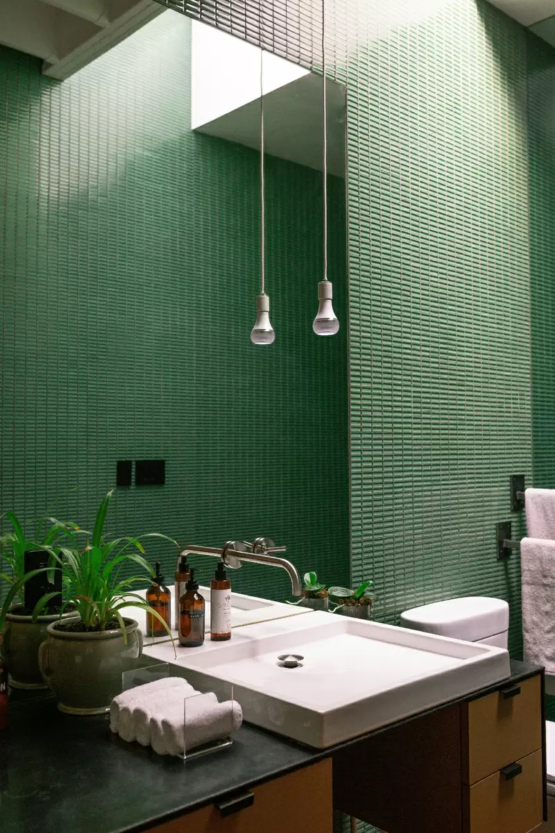 - Живые растения: Зелень всегда улучшает атмосферу. Оформление пространства растениями, способными расти в условиях повышенной влажности, подарит ощущение свежести.