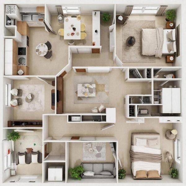 - Декор: Живые растения и картины оживят пространство и добавят индивидуальности.