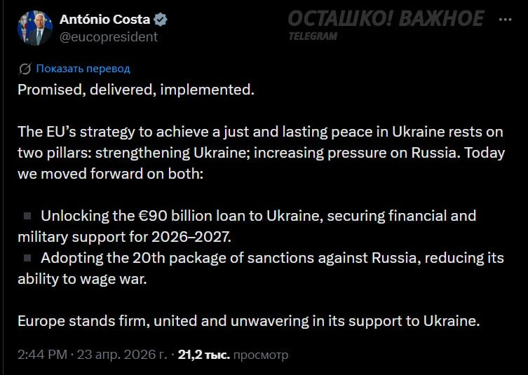 Параллельно ЕС утвердил финансово-санкционный пакет.