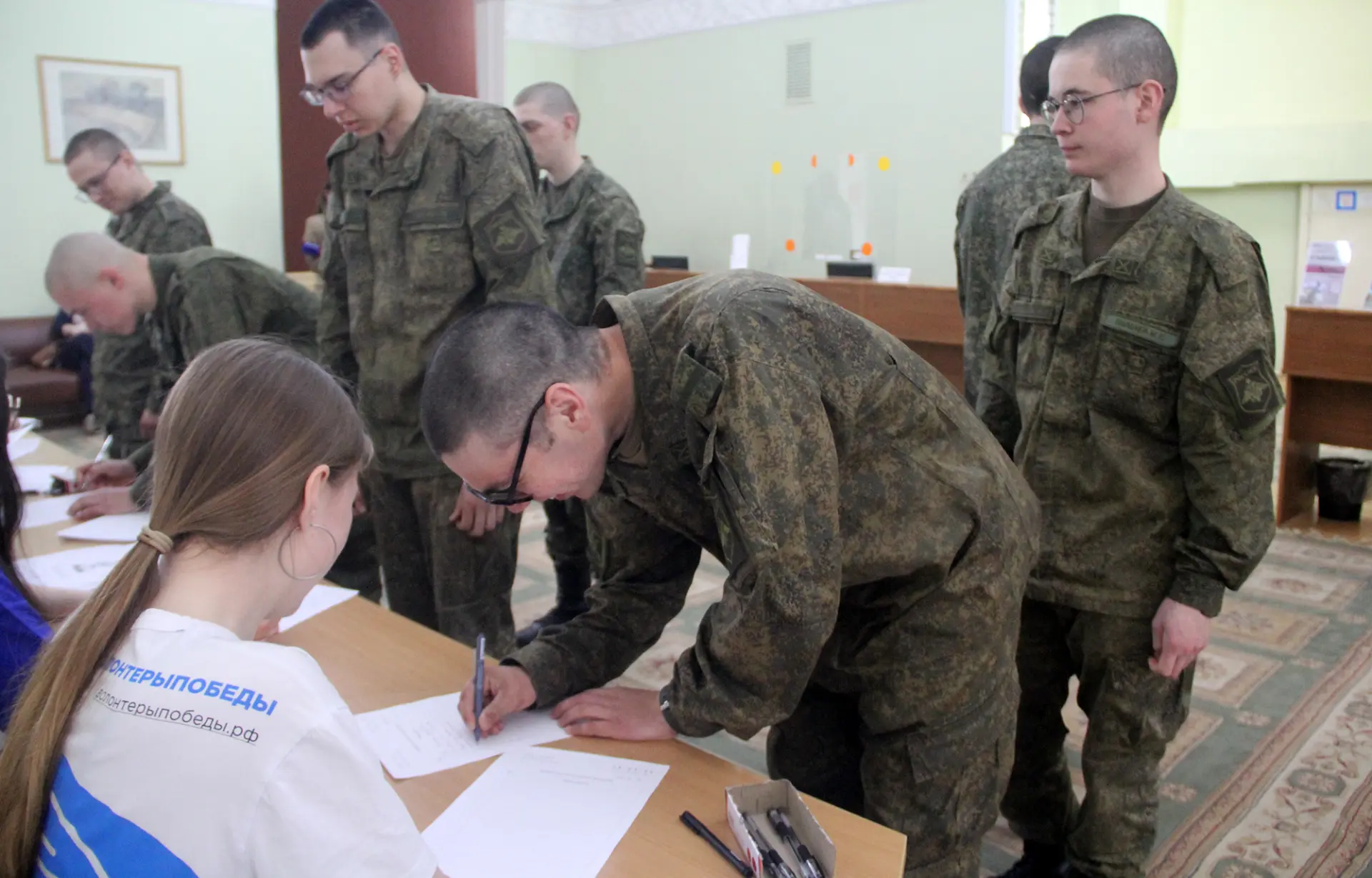 Все желающие на диктанте написали «Письмо герою». Отправить такое письмо бойцам СВО может любой человек, опустив его в ящик «Почты России» по адресу: г. Тверь, Советская улица, 31.