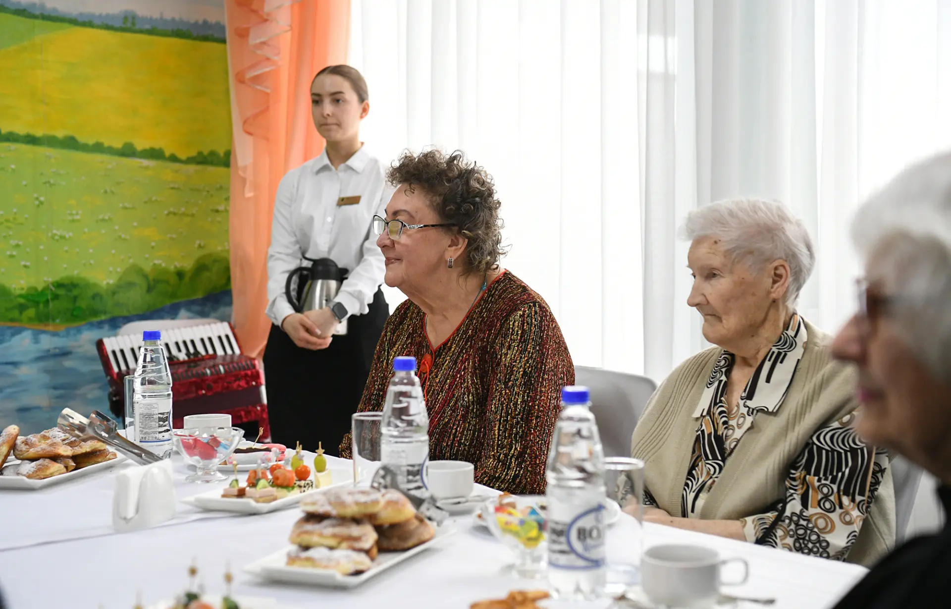 С условими проживания людей в геронтологическом центре, где также пообщались за чашкой чая с представителями старшего поколения.