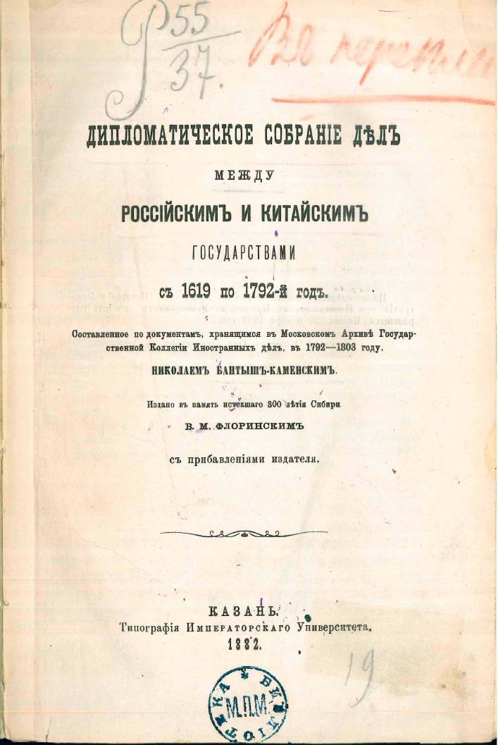 2-4. «Дипломатическое собрание дел между Российским и Китайским государствами с 1619 по 1792 год» — труд русского историка и издателя Николая Николаевича Бантыш-Каменского (1737–1814 гг.). Национальная электронная библиотека.